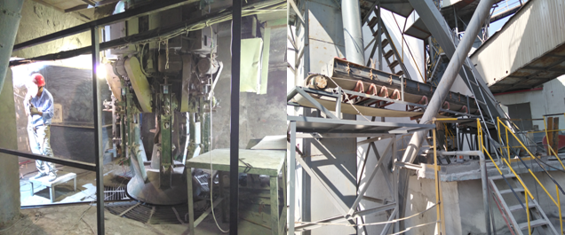 4#包裝機正在密封;原二車間φ3.2m水泥磨技改入磨皮帶