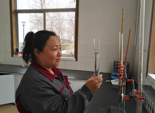 化水崗位員工張芳認(rèn)真做好試驗(yàn)