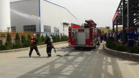 此次演練以重山光電甲醇儲(chǔ)罐由于管道損壞,引起甲醇泄漏,造成巡檢人員中毒,應(yīng)急處置過(guò)程中發(fā)生次生火災(zāi)事故為模擬場(chǎng)景,針對(duì)甲醇泄漏、中毒、火災(zāi)等事故進(jìn)行了專(zhuān)項(xiàng)應(yīng)急預(yù)案演練。在現(xiàn)場(chǎng)總指揮協(xié)調(diào)和各參與部門(mén)的配合下,演練有條不紊進(jìn)行并達(dá)到預(yù)期效果。