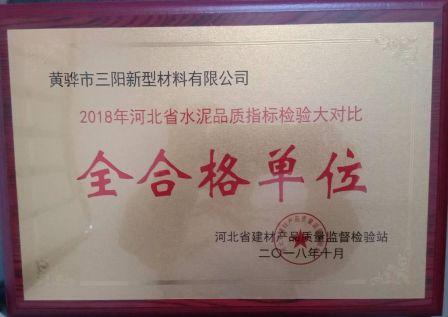 黃驊三陽喜獲得水泥品質(zhì)指標(biāo)檢驗大對比全合格單位稱號