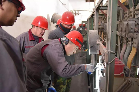 動(dòng)力車(chē)間電工為供電盤(pán)做著“體檢”