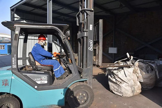 忙碌于廢棄物周轉(zhuǎn)的叉車司機