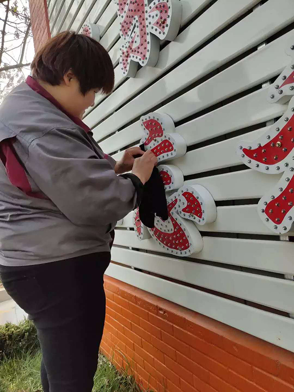 物資部文化墻上“心系重山,精誠服務,不忘初心,砥礪前行”十六個字真正體現(xiàn)了她們?yōu)楣ぷ鞯臒o私奉獻。在保持5S現(xiàn)場管理標準上,她們依然用瘦弱的身影平凡而堅定的踐行著致良知精神。
