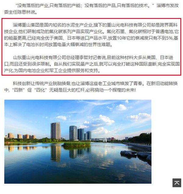 5月14日,淄博日報公眾平臺《掌中淄博》在《眾志成城開新篇——再造淄博新動能》系列報道中推送了重山光電的創(chuàng)新發(fā)展。重山光電作為淄博市新動能轉(zhuǎn)換的企業(yè)代表和重大項目,成功研制出氟化碳系列產(chǎn)品并實現(xiàn)產(chǎn)業(yè)化。打破了國際壟斷市場,為推進淄博市企業(yè)新舊動能轉(zhuǎn)換提供了行業(yè)實踐。