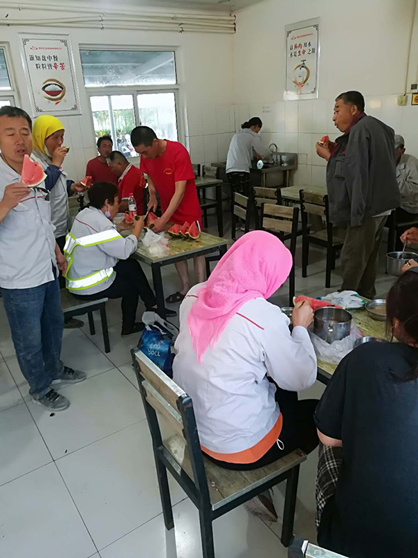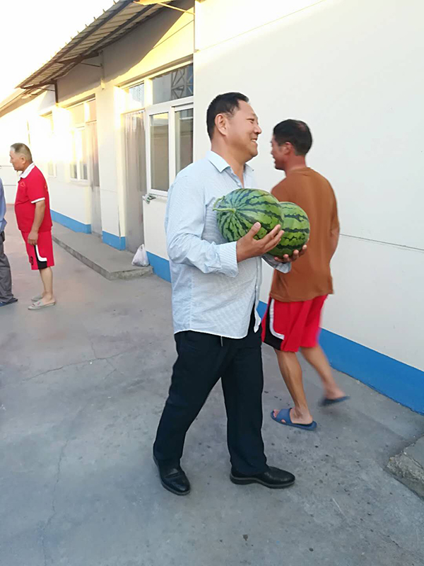 6月3日,黃驊三陽客戶陳亮到公司辦理業(yè)務(wù)時,看到總經(jīng)理王軍林帶領(lǐng)職工已連續(xù)兩天在搶修磨機(jī),面對磨房的高溫環(huán)境,王軍林總經(jīng)理和職工們克服種種困難,揮汗如雨,在高溫環(huán)境中搶進(jìn)度,搶時間這奮斗精神深深地感染著陳亮經(jīng)理,并于下午為三陽的職工們送來了西瓜、方便面、礦泉水等物資。重山員工用實際行動踐行致良知,同時,致良知思想也感染并深入到客戶心中,對陳亮經(jīng)理的這種善心義舉,王軍林總經(jīng)理和三陽員工表達(dá)了由衷的感謝。