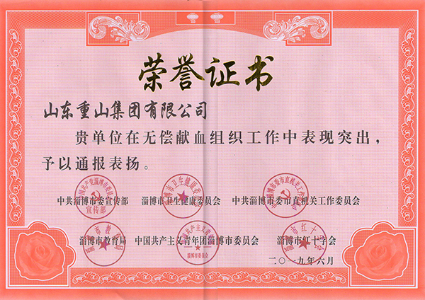 多年來,重山集團始終堅持“為員工謀福祉  為社會做貢獻”的企業(yè)愿景。發(fā)展自身經(jīng)濟的同時,積極參與、關心、支持無償獻血事業(yè)。2018年,集團積極響應淄博市 “全民無償獻血月”的聯(lián)合倡議,組織開展“奉獻點滴之愛  弘揚熱血重山”愛心公益獻血活動,打響了淄博市首屆“全民無償獻血月”第一炮,活動當天在李學董事長的帶領下,150余名重山干部員工獻血58600毫升。以實際行動體現(xiàn)了重山人的責任和擔當,為推動全市無償獻血事業(yè)做出了積極貢獻。