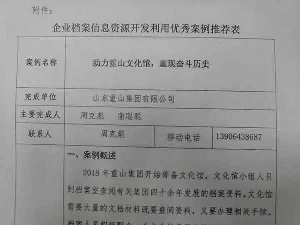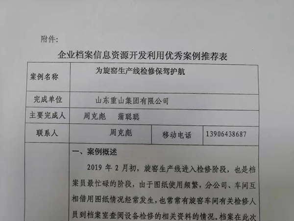 近年來,集團公司不斷加強企業(yè)檔案管理、完善檔案資源、建立完善電子檔案系統(tǒng),提高檔案利用水平和查閱效率。近期,集團辦公室通過認(rèn)真準(zhǔn)備,積極申報,經(jīng)過區(qū)縣檔案館推薦,評選領(lǐng)導(dǎo)小組評定等程序,集團辦公室周克彪、蒲聰聰撰寫的《為旋窯車間檢修保駕護航》、《助力重山文化館,重現(xiàn)奮斗歷史》分別榮獲全市企業(yè)檔案資源開發(fā)利用二等獎和三等獎,據(jù)悉這是全市唯一一家榮獲兩項殊榮的企業(yè)。集團辦公室將以此為契機,不斷提高檔案管理水平,豐富檔案資源,不斷滿足企業(yè)檔案的查閱需求,為企業(yè)發(fā)展提供更好的服務(wù)。