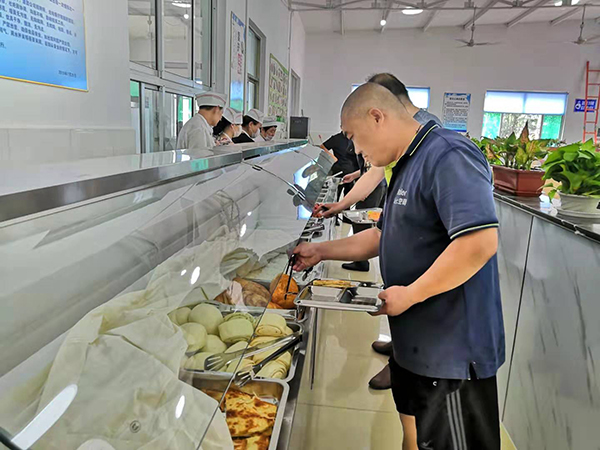 重裝后的食堂桌椅整齊、環(huán)境干凈整潔、布置舒適溫馨、菜色新鮮、品類豐富,以自助餐和半自助餐等形式就餐,不僅滿足了生活區(qū)職工和熱電廠、供料等單位員工的就餐需求,同時也為各類送貨司機(jī)和施工人員提供了就餐便利,用實際行動踐行了致良知思想,真正做到了“為員工謀福祉”。