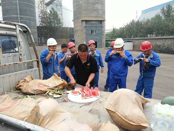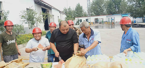 隨著夏季節(jié)氣大暑的到來,又到了一年中最熱的階段。集團(tuán)各車間的干部員工冒著酷暑,仍然堅守在一線崗位,認(rèn)真維護(hù)著生產(chǎn)正常運行。對此,集團(tuán)辦公室和總務(wù)處干部員工感同身受,23日下午,總務(wù)處為奮斗在一線員工送去西瓜、礦泉水、綠豆湯等消暑物資,緩解一線員工的高溫工作狀態(tài),確保職工身心健康,讓一線員工感受集團(tuán)公司的關(guān)懷,以更好的狀態(tài)投入到工作中。
