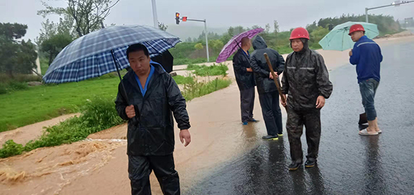 受臺(tái)風(fēng)“利奇馬”的影響,自8月10日的持續(xù)降雨造成公司部分路段積水嚴(yán)重。尤其是職工生活區(qū)與102省道交界處積水成湖,這個(gè)路段是生活區(qū)職工上下班的必經(jīng)之道,也是變電站電纜溝所在地,大量積水加帶湍急的水流對(duì)上下班職工造成嚴(yán)重影響,也威脅著變電站的安全運(yùn)行。11日早晨,集團(tuán)公司總經(jīng)理王魯淄得知這一消息立刻趕往現(xiàn)場(chǎng)部署工作。熱電廠韓紀(jì)永、張斌、趙剛、魯中水泥王樹俊,集團(tuán)總務(wù)處王宏、王立群、陳萬鵬等現(xiàn)場(chǎng)成立防汛抗洪小組。一邊對(duì)現(xiàn)場(chǎng)進(jìn)行警戒,組織員工挖渠排水、擺放沙袋。另一邊協(xié)調(diào)供料車間、熱電廠4臺(tái)鏟車支援。4臺(tái)鏟車馬不停蹄從料場(chǎng)運(yùn)石頭到現(xiàn)場(chǎng)筑堤,經(jīng)過近6小時(shí)的緊張工作,近百余袋沙袋和40噸石頭在電纜溝筑起一道安全防護(hù)堤,及時(shí)阻止了山洪對(duì)電纜溝的沖擊,保證了員工的人身安全和公司正常生產(chǎn)。