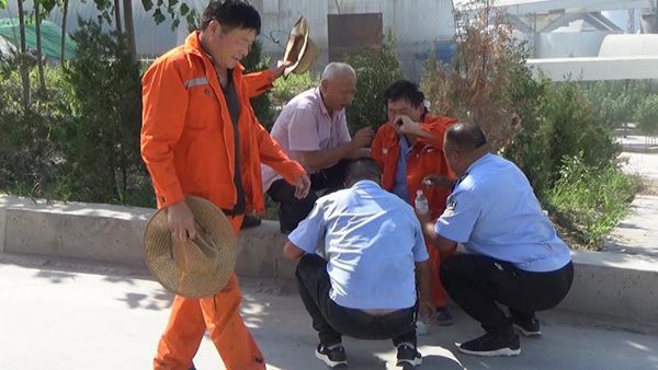快!王世恩中暑了,趕緊打電話給班長”,一起工作的李長全向同事喊道。這是8月23日上午,集團(tuán)總務(wù)處開展中暑應(yīng)急演練中的一幕。 此次演練按計劃:總務(wù)處一名道路養(yǎng)護(hù)工在熟料大棚工作時中暑暈倒,同事員工立即報告班長和部門領(lǐng)導(dǎo)??倓?wù)處主任王宏接到電話后立即帶領(lǐng)相關(guān)人員奔赴現(xiàn)場。首先用冷毛巾濕敷中暑員工頭頂,并迅速把中暑職工抬到就近陰涼處,用清涼通氣的藥品通入中暑員工的鼻孔,最后讓其服下解暑藥品。根據(jù)員工的中暑程度讓其充分休息,嚴(yán)重中暑者計劃及時送醫(yī)救治。演練結(jié)束后,王宏對演練中的不足進(jìn)行了總結(jié),并提出了解決方案。通過此次演練。使干部職工認(rèn)識到了防暑降溫措施的重要性,增強(qiáng)了員工在高溫作業(yè)下的保護(hù)意識,同時也提高了集團(tuán)總務(wù)處安保大隊的應(yīng)急能力。