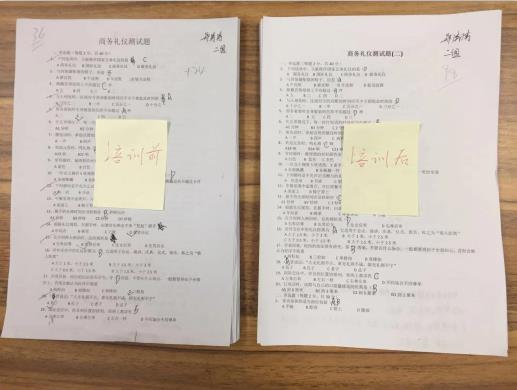 本次培訓(xùn)設(shè)置了前后對比測試評估,培訓(xùn)前測試平均分為38分,培訓(xùn)后測試平均分為87分,成績有了明顯提升!通過培訓(xùn),既讓員工對商務(wù)禮儀規(guī)范的理念、規(guī)范的實務(wù)性操作有了新的認(rèn)知,同時也對如何強化自身良好的職業(yè)素養(yǎng)有了進一步的了解,為提升企業(yè)的整體形象打下良好基礎(chǔ)。