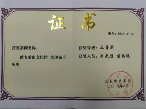 日前,山東省檔案館表彰通報了全省企業(yè)檔案開發(fā)利用優(yōu)秀案例,由集團辦公室周克彪、蒲聰聰撰寫的《助力重山文化館,重現(xiàn)奮斗歷史》的應(yīng)用案例榮獲省級三等獎。