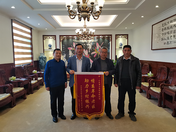11月29日,市人大下派干部楊朝順主任、沂源縣大張莊鎮(zhèn)南巖六村書記于守增等來到重山集團(tuán),感謝集團(tuán)為鄉(xiāng)村建造水池、修筑道路捐贈水泥物資并送上“情系革命老區(qū) 助力鄉(xiāng)村振興”的錦旗。