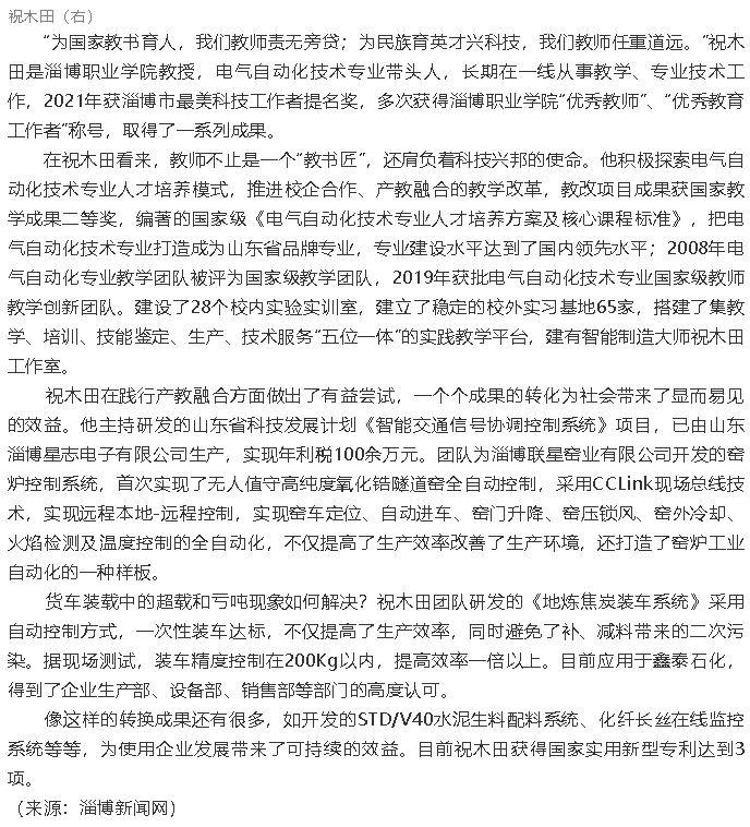 【淄博工匠】“淄博金牌工匠”祝木田—— 一線“教書(shū)匠”心懷科技?jí)?/p>