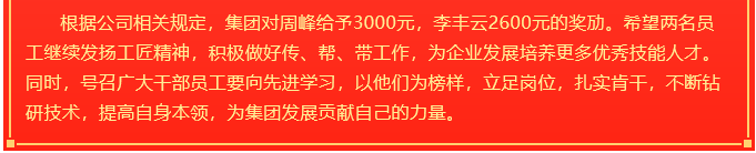 【獎(jiǎng)勵(lì)】周峰、李豐云獲集團(tuán)獎(jiǎng)勵(lì)