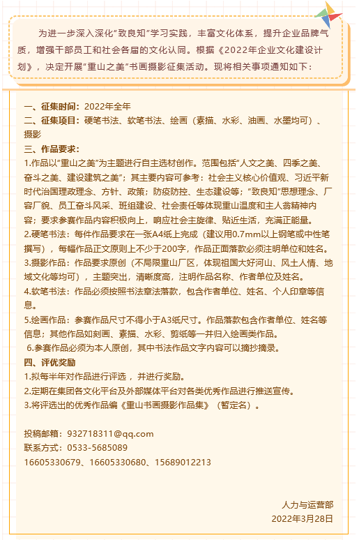 【通知】“重山之美”書(shū)畫(huà)攝影作品征集通知