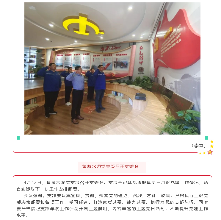 【黨建】魯中水泥黨支部選樹(shù)“黨員示范崗”;魯中、魯蒙水泥黨支部召開(kāi)支委會(huì)