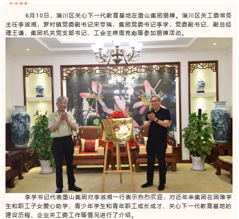 淄川區(qū)關(guān)心下一代教育基地在重山集團(tuán)揭牌