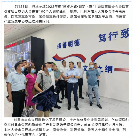 【頭條】巴林左旗 “投資左旗?圓夢上京”主題招商推介會(huì)嘉賓到鵬峰化工觀摩