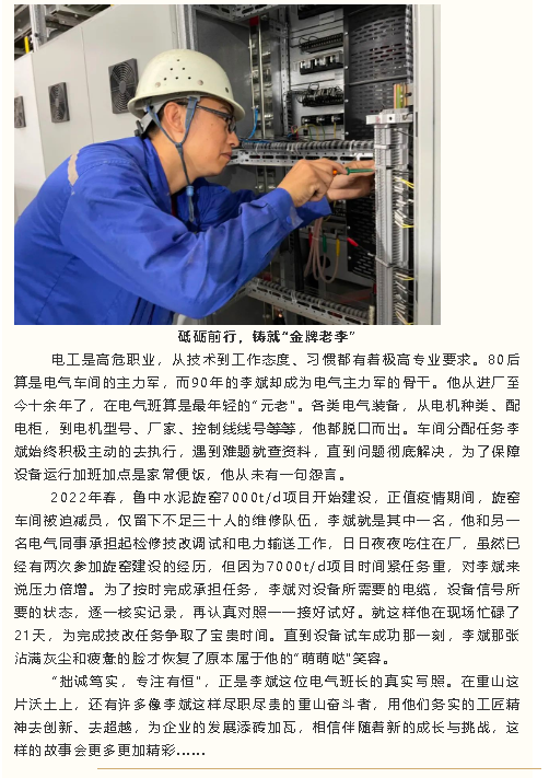 【重山人?重山事】拙誠(chéng)篤實(shí) 專注有恒——記魯中水泥電氣車間班長(zhǎng)李斌