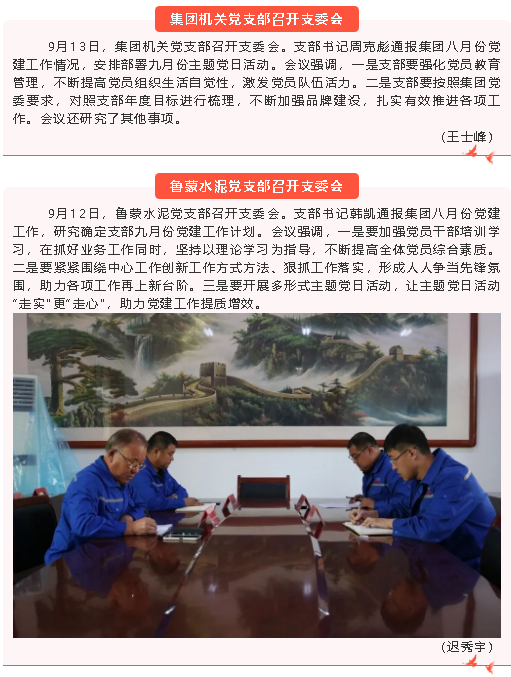 【黨建】南韓化工黨支部、集團機關(guān)黨支部、魯蒙水泥黨支部分別召開支委會