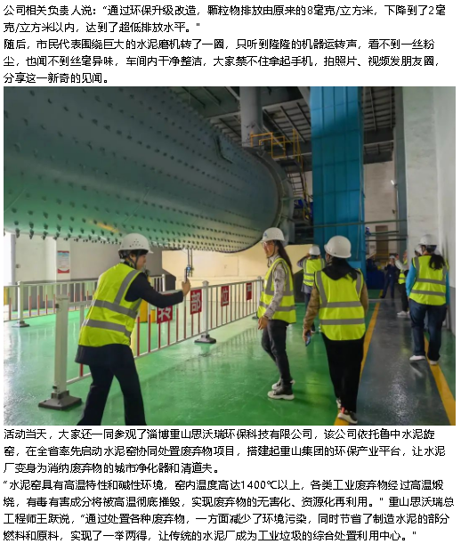 中國環(huán)境:傳統(tǒng)水泥廠變身城市凈化器!淄川市民代表前往企業(yè)探秘