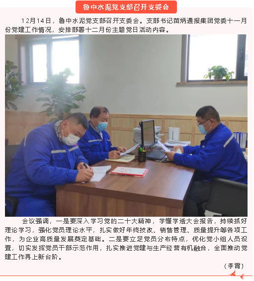 【黨建】魯中水泥黨支部、重山光電黨支部召開支委會(huì),黃驊三陽(yáng)、鵬峰化工參加黨建工作會(huì)議