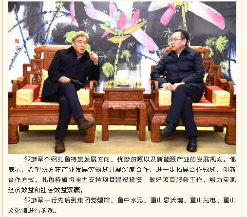 扎魯特旗委書記邵彥軍到重山集團考察指導(dǎo)工作