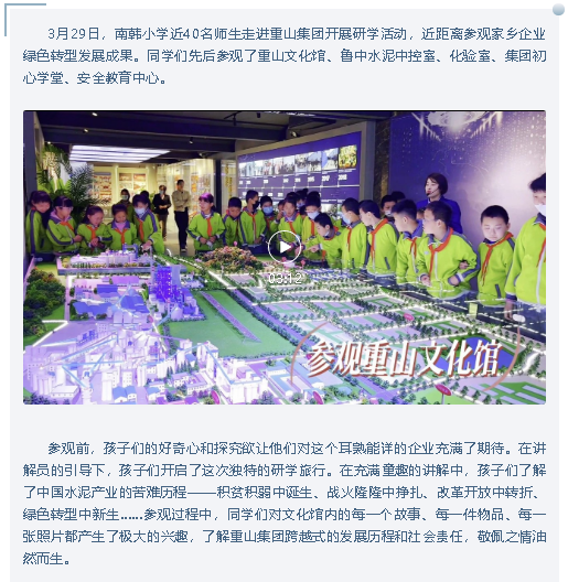 南韓小學(xué)師生到重山集團(tuán)開(kāi)展研學(xué)活動(dòng)