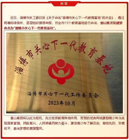 【榮譽】重山集團黨建館被命名為“淄博市關心下一代教育基地”