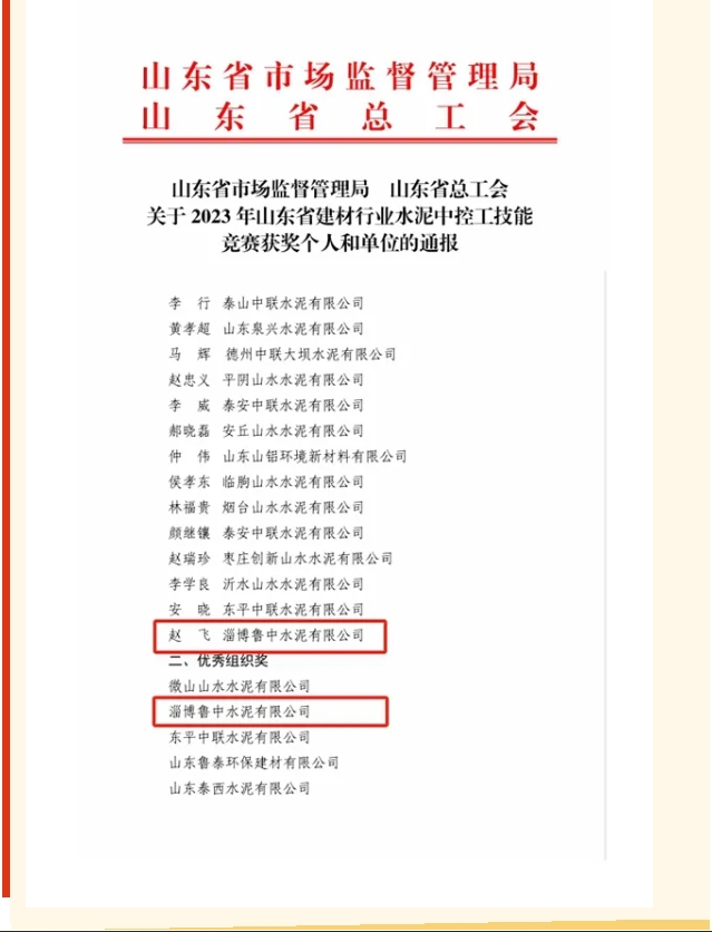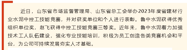 【榮譽(yù)】魯中水泥趙飛榮獲省建材行業(yè)水泥中控工技能競賽三等獎