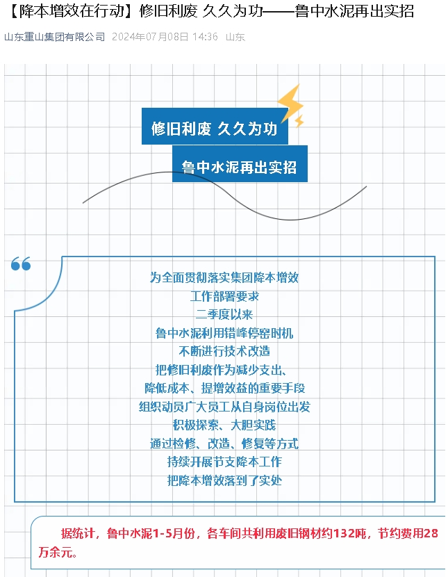 【降本增效在行動】修舊利廢 久久為功——魯中水泥再出實招