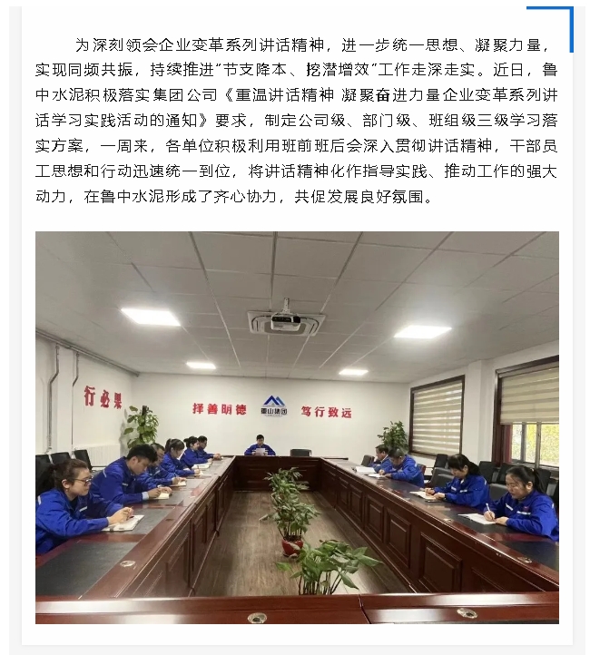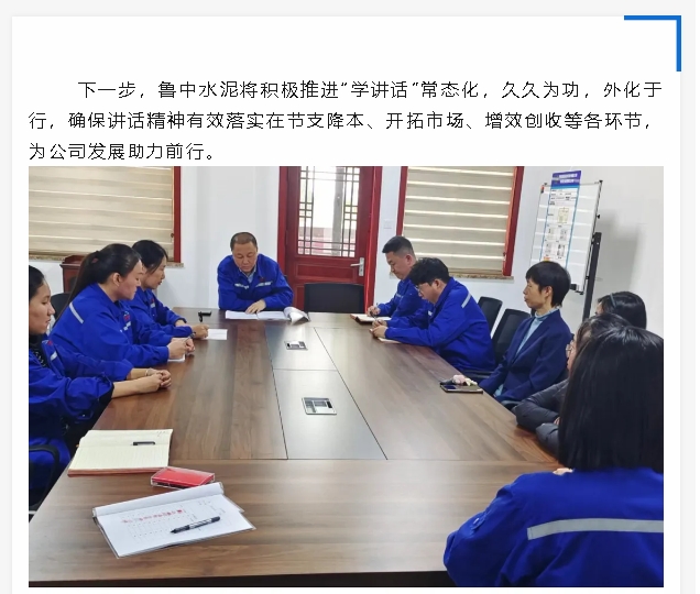 【頭條】學(xué)講話、增動(dòng)力、聚合力、促發(fā)展——魯中水泥積極開展學(xué)習(xí)講話精神活動(dòng)