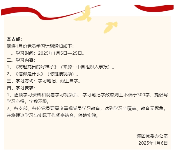【通知】集團(tuán)黨委1月份學(xué)習(xí)通知
