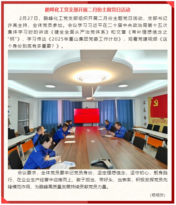 【黨建】重山光電黨支部、黃驊三陽黨支部、鵬峰化工黨支部分別開展二月份主題黨日活動