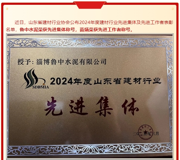 【榮譽】魯中水泥榮獲2024年度省建材行業(yè)先進集體、先進工作者