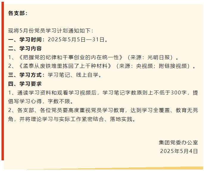 【通知】集團(tuán)黨委5月份學(xué)習(xí)通知