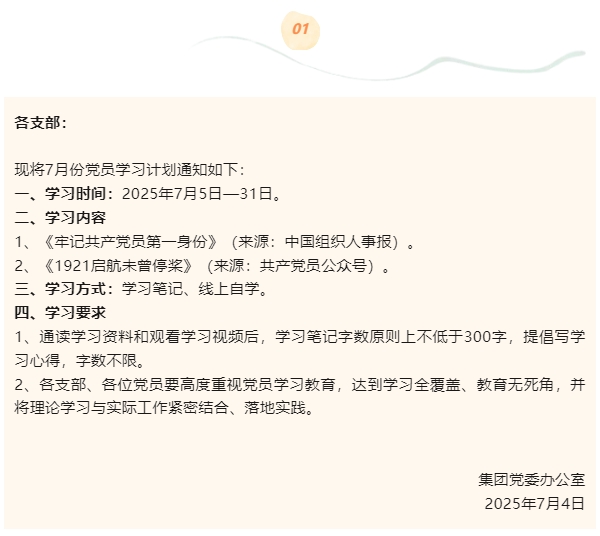 【通知】集團(tuán)黨委7月份學(xué)習(xí)通知