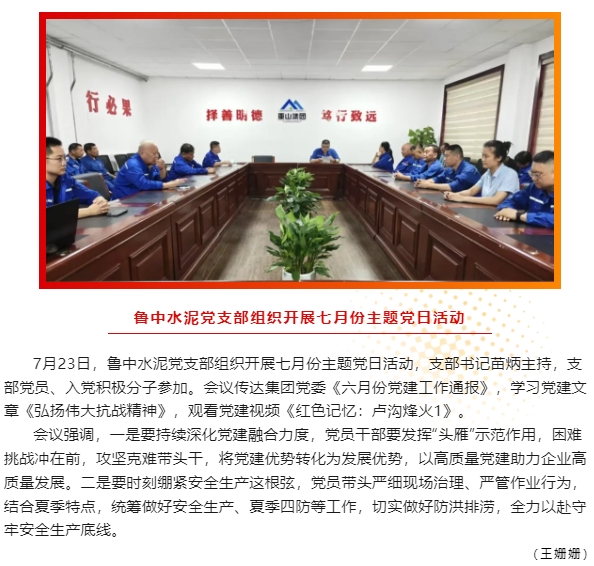 【黨建】魯中水泥黨支部組織開展七月份主題黨日活動(dòng)、重山光電黨支部召開支委會(huì)