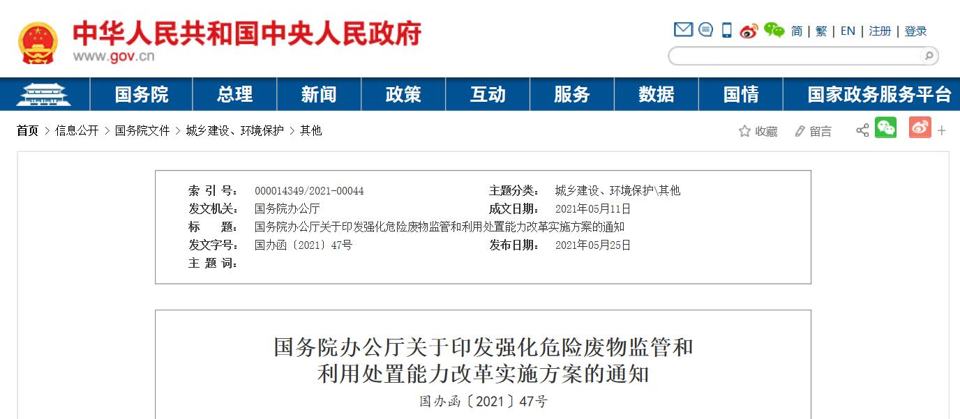 強化危險廢物監(jiān)管和利用處置能力改革實施方案