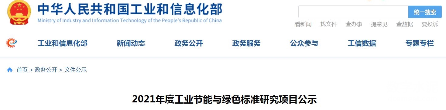 【轉(zhuǎn)載】多項水泥標準入選工信部2021年度工業(yè)節(jié)能與綠色標準研究項目名單