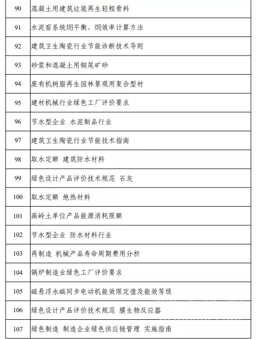 2021年度工業(yè)節(jié)能與綠色標準研究項目公示名單