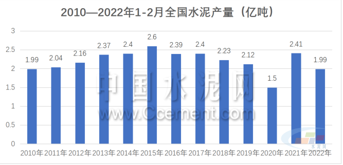 3月15日,國家統(tǒng)計(jì)局消息,1—2月全國水泥產(chǎn)量19933萬噸,同比減少17.8%??偖a(chǎn)量跌回12年前,僅高于疫情影響嚴(yán)重的2020年,與2010年基本持平。