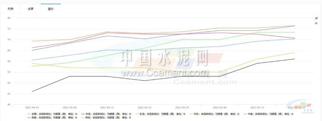 具體來看,全國水泥庫容比從4月初的60.53%一路走高至最新的70.27%。......