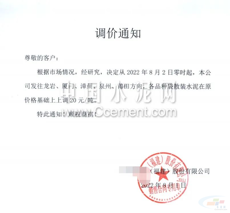 受停窯帶動,加之企業(yè)調(diào)價意愿強烈,8月2日起省內(nèi)一些主要廠家開始嘗試通知上調(diào)水泥價格20元/噸左右。目前已有部分企業(yè)發(fā)布調(diào)漲通知,其余企業(yè)預(yù)計稍晚幾日跟進。