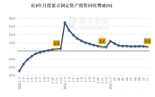 2022年1-11月,全國(guó)固定資產(chǎn)投資(不含農(nóng)戶)52萬(wàn)億元,同比增長(zhǎng)5.3%,增速較1-10月下降0.5個(gè)百分點(diǎn),高于去年同期0.1個(gè)百分點(diǎn)。從單月投資來(lái)看,11月份固定資產(chǎn)投資(不含農(nóng)戶)環(huán)比下降0.87%。