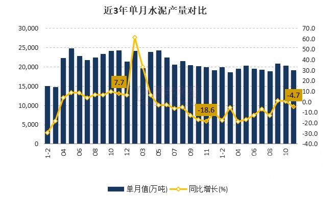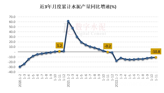 【轉(zhuǎn)載】需求持續(xù)減弱,1-11月份全國(guó)水泥產(chǎn)量同比降幅略有收窄