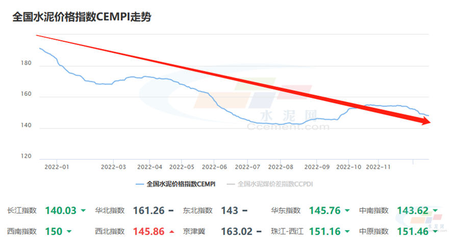 全國水泥價格指數(shù)CEMPI震蕩下行
