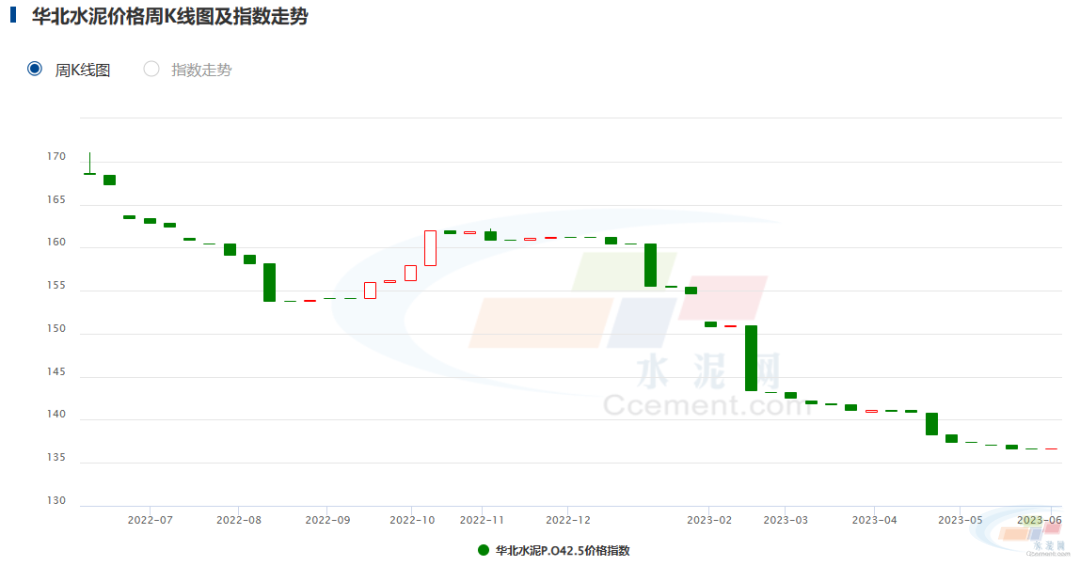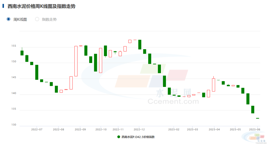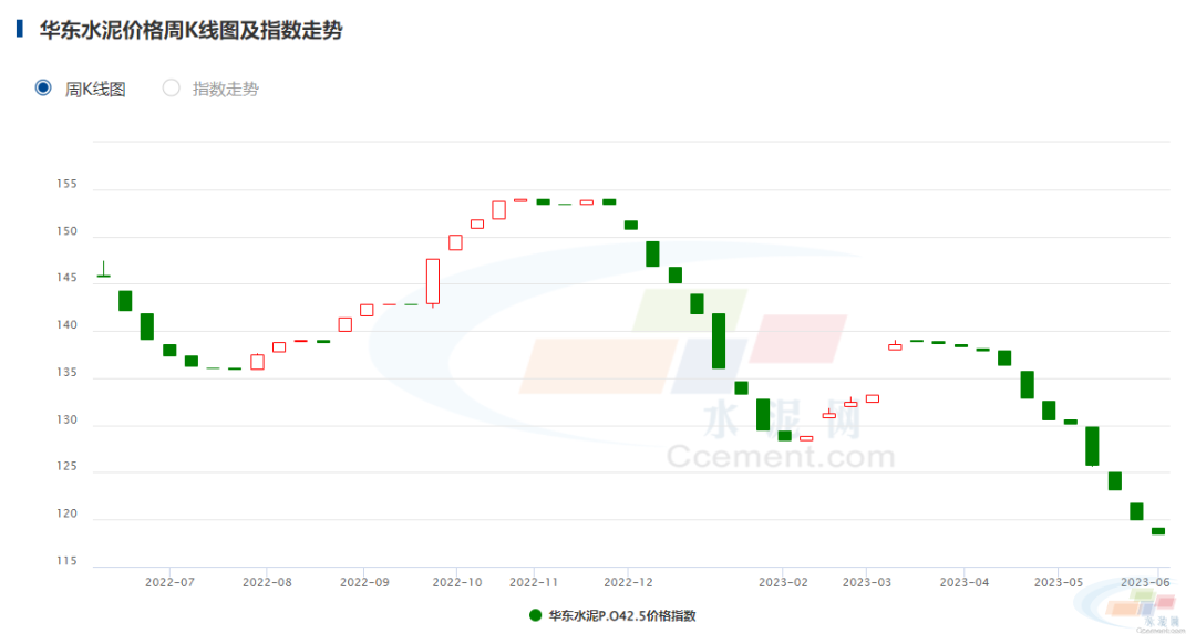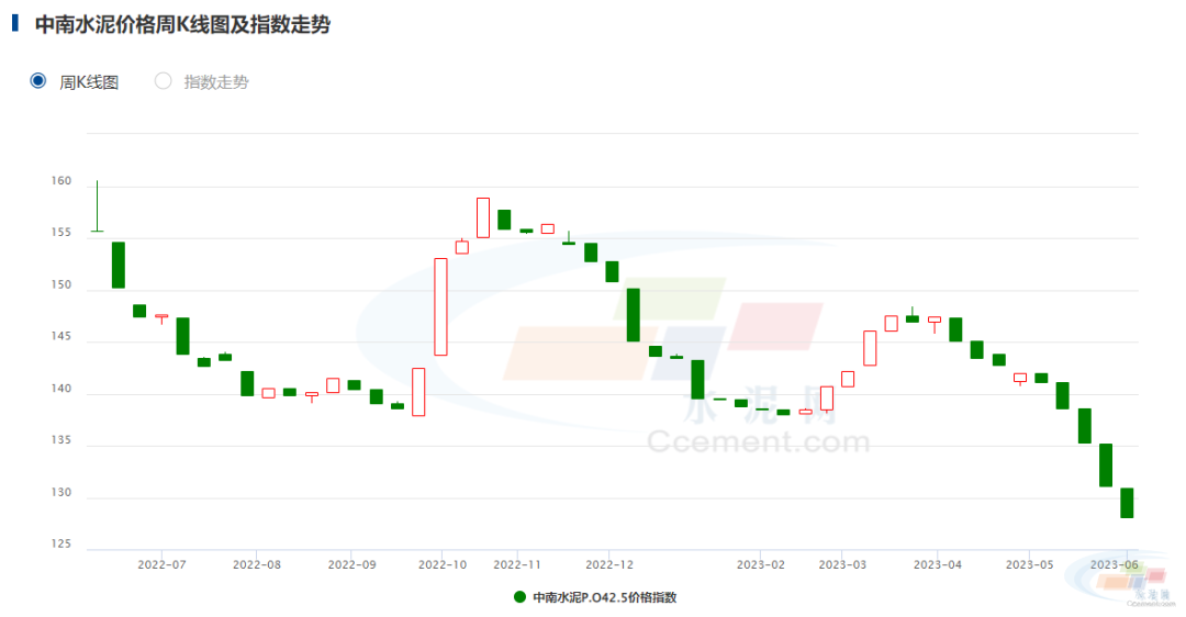 6月前后全國市場需求仍較疲弱,企業(yè)出貨較差,市場競爭激烈,水泥價(jià)格延續(xù)跌勢,或受前期跌幅較深影響,本周價(jià)格跌幅有所收窄;